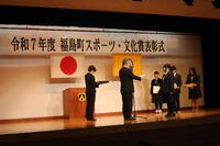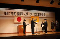 令和8年2月13日(金)、令和7年度福島町スポーツ・文化賞の表彰式が福島町福祉センターで開催されました。本校からは、1年生2名、2年生2名、3年生1名が文化賞、1年生1名がスポーツ奨励賞を受賞しました。今年1年、生徒は学習だけでなく、部活動や各種大会、コンクール等に積極的に参加し良い結果を残しました。来年も引き続き、頑張ってほしいと思います。