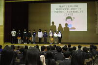 12月19日(金)、本校の体育館を会場に小中高合同での探究活動の発表会を行いました。福島小学校5年生、吉岡小学校3~6年生、福島中学校2年生、福島商業高校1~3年生の児童生徒が参加し、今年度の学習の成果を発表しました。本校の1年生は総合的な探究の時間のまとめ、2年生はインターンシップの報告、3年生は課題研究の取組について発表しました。