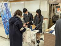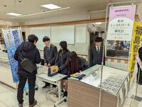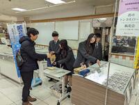 1月31日(土)、丸井今井函館店において「青のトンネルロール~ブルーベリーフロマージュ~」の2回目の販売会を実施いたしました。この日から家庭学習期間に入った3年生4名が、商業高校で学んだスキルを生かして販売活動を精一杯頑張りました。